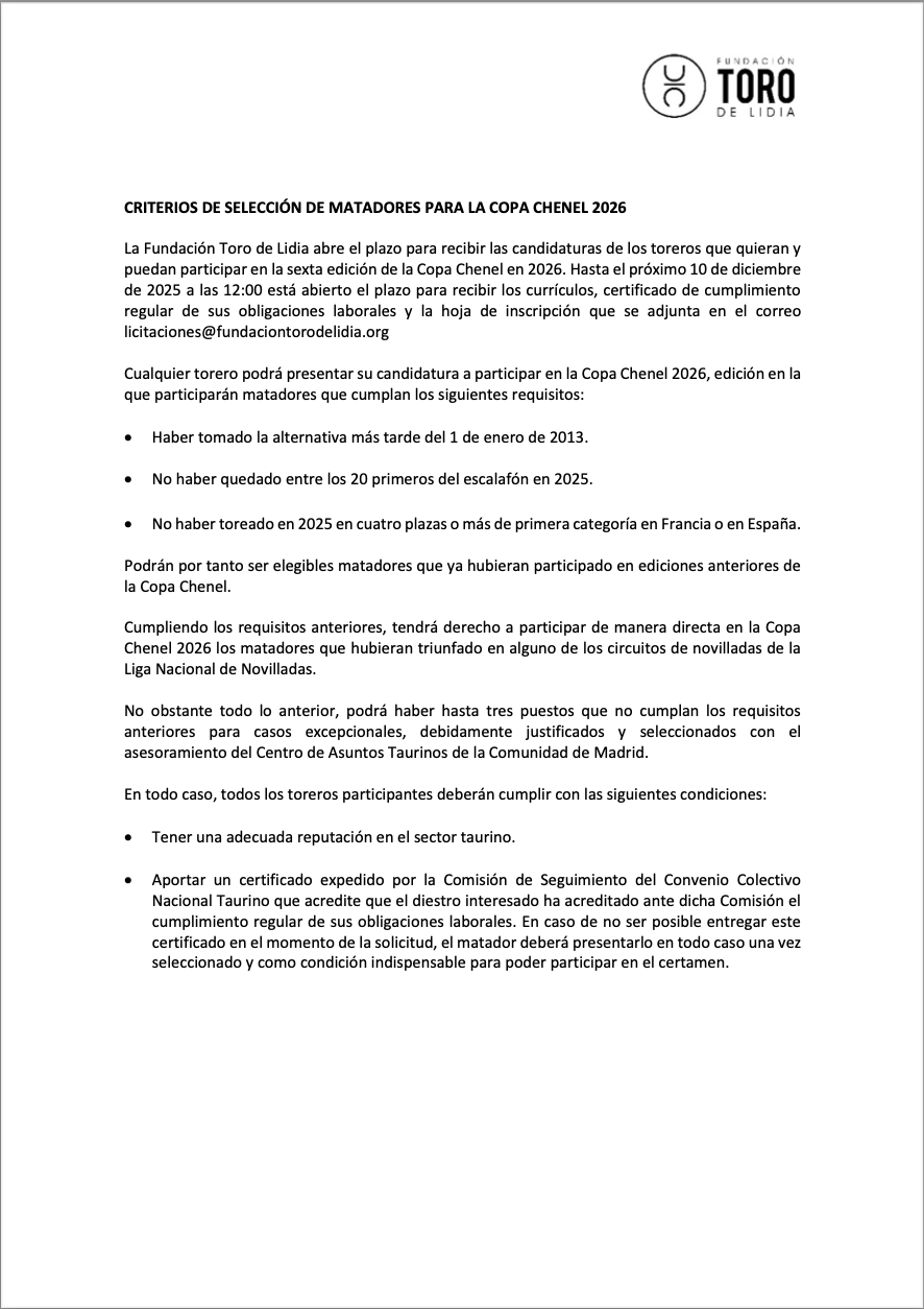Copa Chenel y el Circuito de Novilladas de Madrid 2024