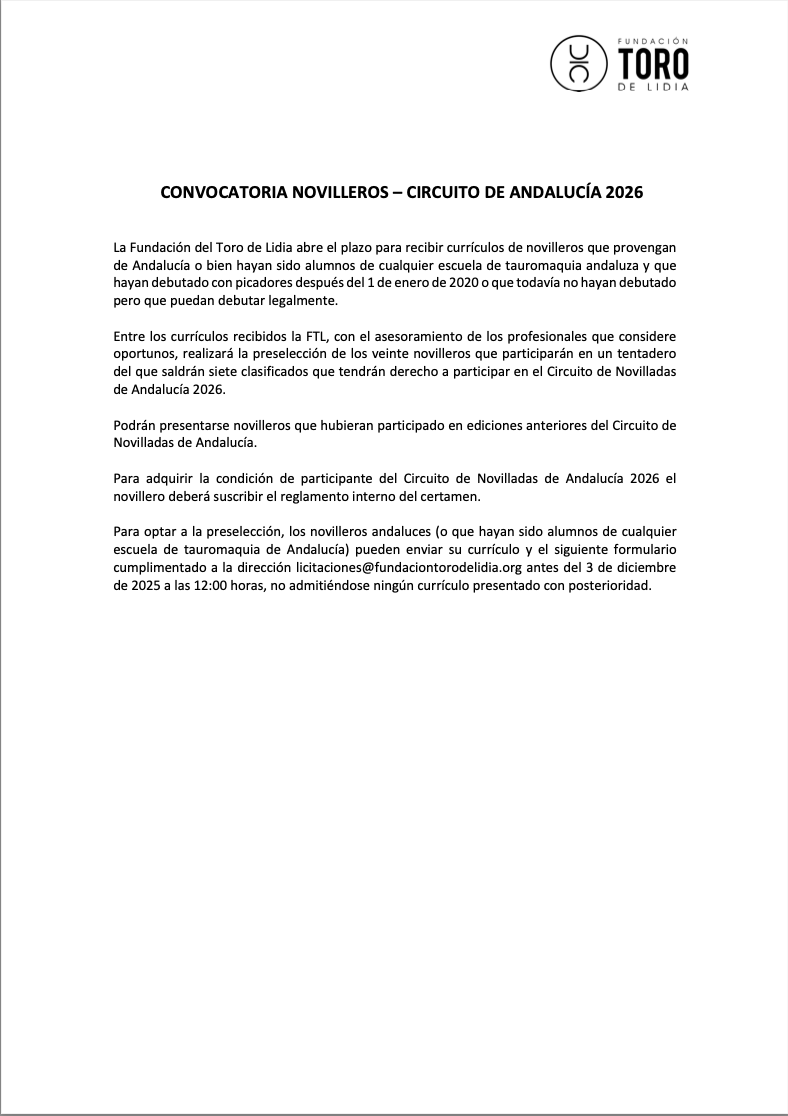 CIRCUITO DE NOVILLADAS DE ANDALUCÍA 2026